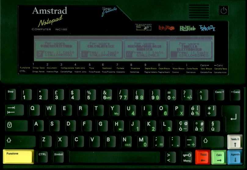 The NC100 Notepad Computer was the first product in the NC series to be launched by Amstrad in September 1992. Its main software features are accessed using the coloured keys, as shown below: