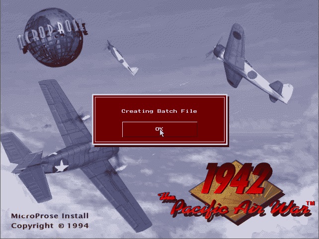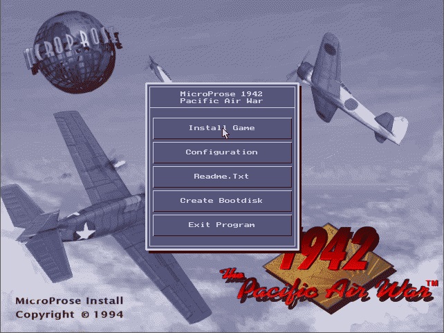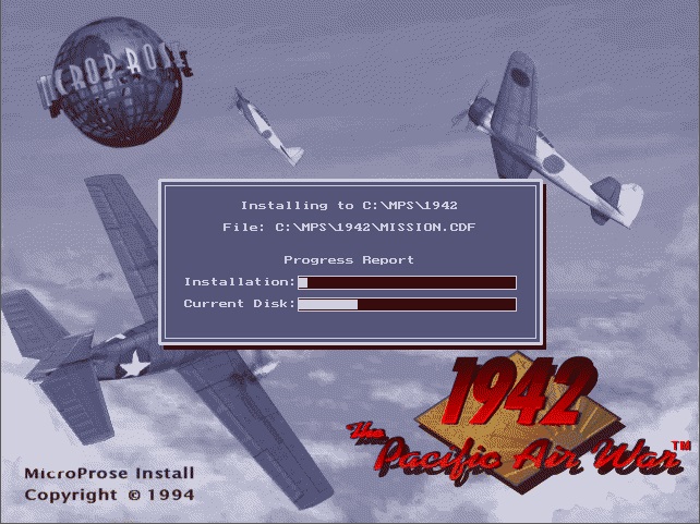The game is installed using the INSTALL.EXE utility. By default the game will be installed to C:\MPS\1942. It can be installed from a floppy drive or from a subdirectory on your hard disk that has all the files from each floppy present. You do not need to use SUBST to make this subdirectory appear as a floppy drive (in fact it won't work as it checks to see if the 'source' is a physical drive).