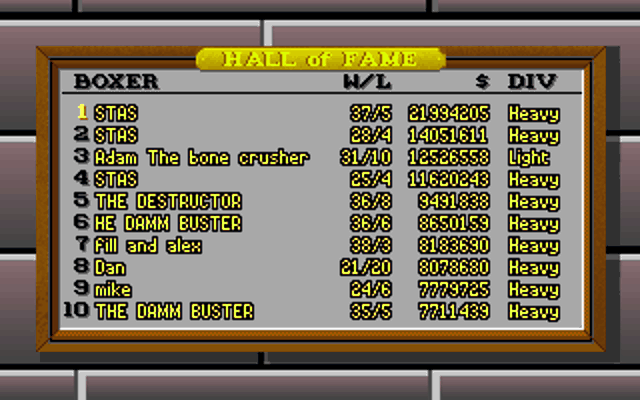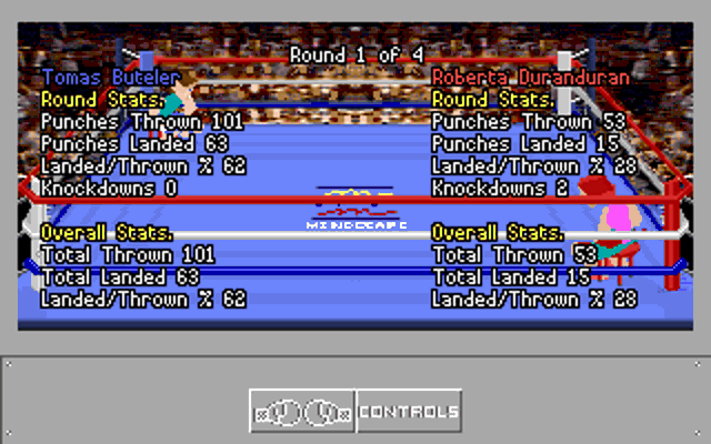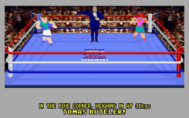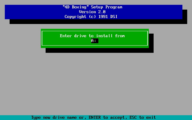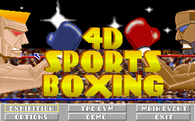 2.0 (EASN version) Feb 1992 Intro shows EASN logo followed by "4D Boxing". Different music and pupils added to boxers' eyes. Logo in middle of ring reads "New York" instead of the Mindscape logo. Separate arrow keys work well for navigation in this version.