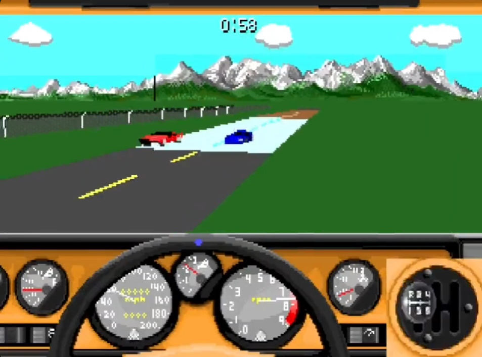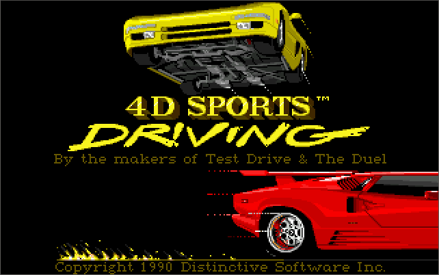 4D Sports Driving, also known as Stunts, was a 3D-polygon racing game written by Distinctive Software of Vancouver and published by both Mindscape and Broderbund in October 1990.