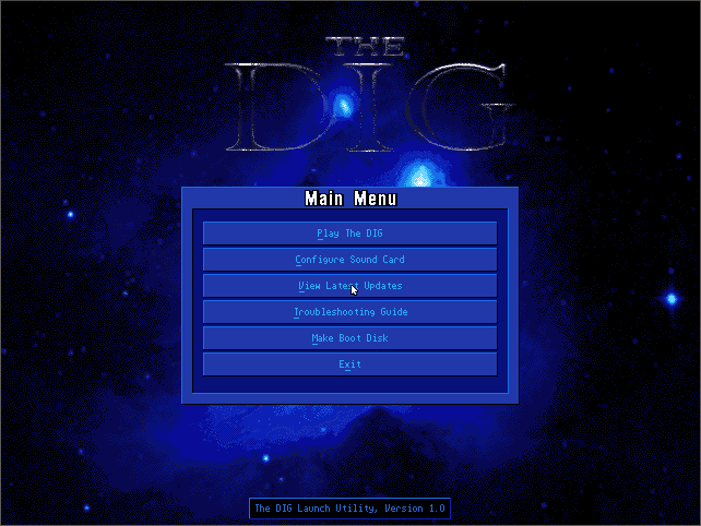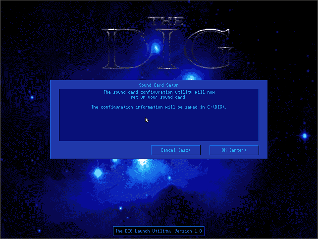 From the CD-ROM, if you are installing or running the game from DOS, navigate to the DIG subdirectory, and run DIG.EXE. This will show The DIG Launch Utility: