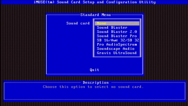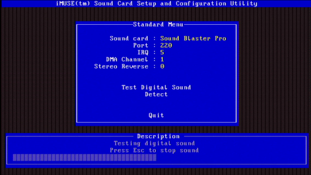The audio configuration settings are stored in C:\DIG in a file called IMUSE.INI. The file is not text-readable or editable. To amend your configuration, re-run DIG.EXE from the CD-ROM and choose 'Configure Sound Card' again.