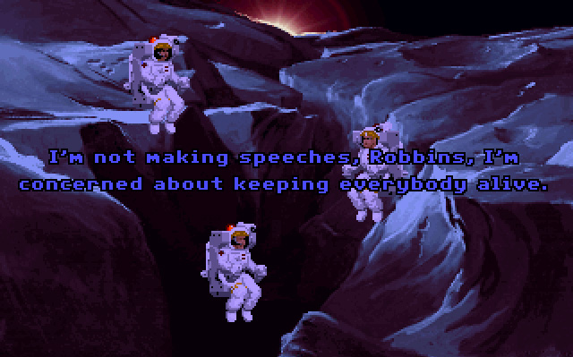 Interactive fiction author Brian Moriarty who was one of the project leaders for The Dig previously worked on Lucasfilm Games' Loom and gave some input into Indiana Jones & The Fate of Atlantis.The storyline of The Dig is that a chosen group of scientists and a journalist are sent on a mission to explore an asteroid called Attila that's on a collision course with Earth. As they conduct their investigations, they end up on a desert planet with seemingly no way to get home again. Your crew must interact with the environment and objects they find to learn all they can and find a way home.