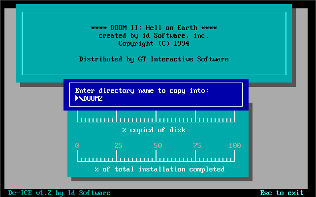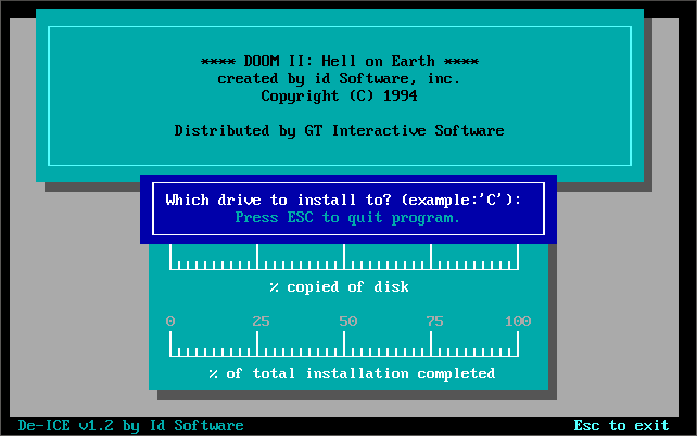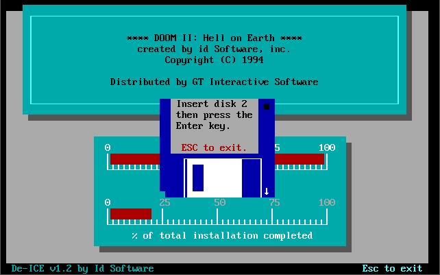 The original floppy disk files are named DOOM2B.<disk#> instead of DOOM2LZH.<disk#>, and a slightly different INSTALL.BAT exists to cater for this.