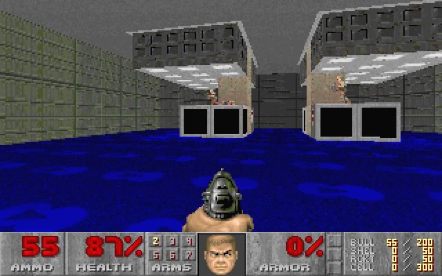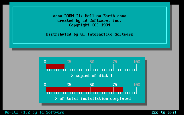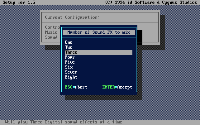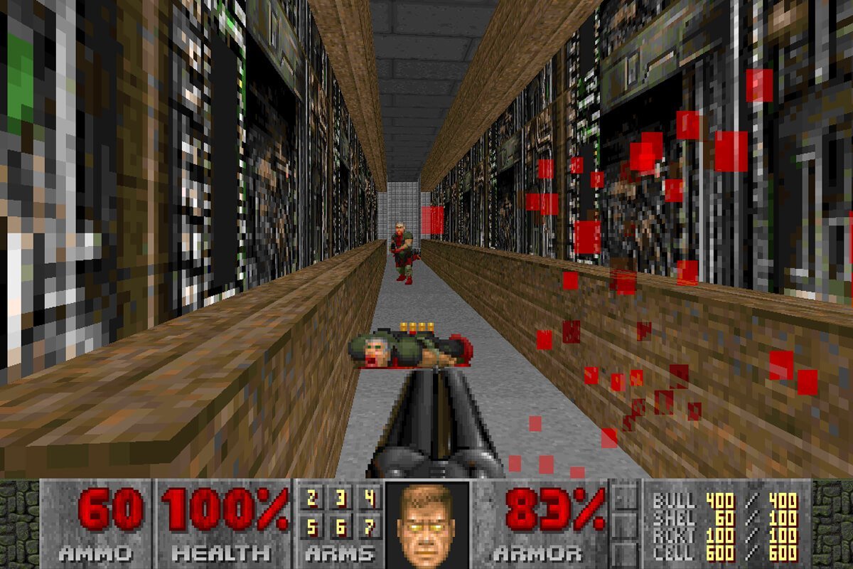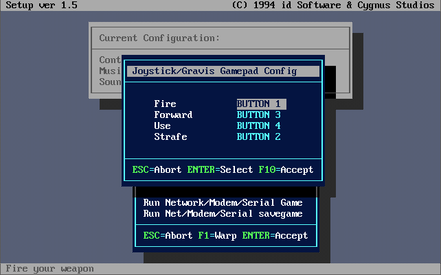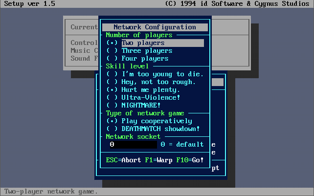 As with Doom, 2 players could play simultaneously via a modem connection and up to 4 could play via a network connection. Both co-op mode and deathmatch modes were available. Also the same as the original, there were 9 scale settings to set the size of the game window if you were running on slower hardware.