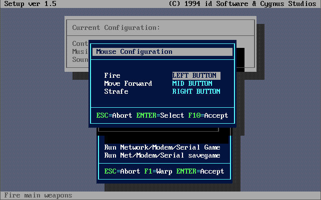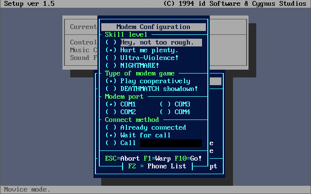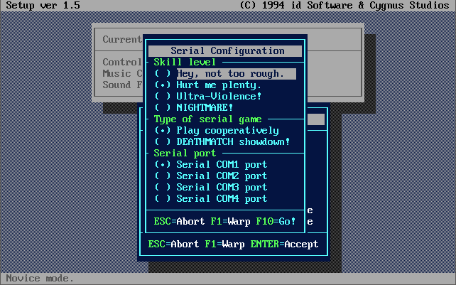 7) If you choose to run a network/modem/serial game, you will get this set of options depending on the type of connection you want to use: