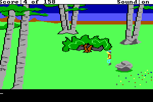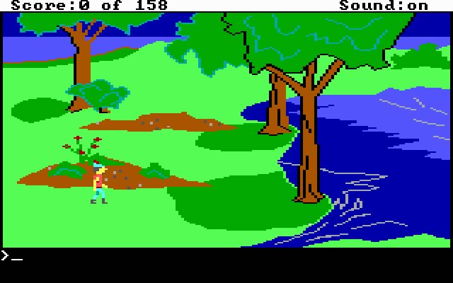 Originally released in partnership with IBM for their new PCjr machine in 1984, King's Quest: Quest for the Crown came to the IBM PC three years later, after a release on the Apple II also.