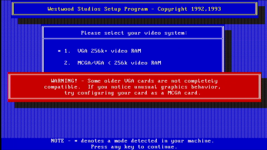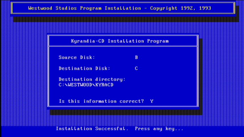 To configure the game's video and audio settings at any time later, you can run SETUP.EXE in the game's installation directory (default is C:\WESTWOOD\KYRACD for the CD-ROM version):