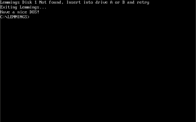 Symptom: I'm trying to start Oh No! More Lemmings, but it's asking me to insert the original Lemmings disk in Drive A or B.