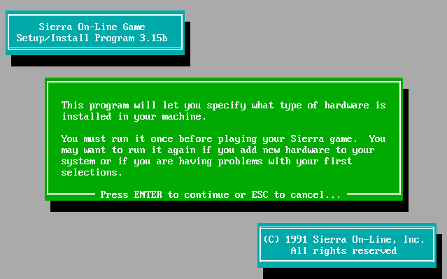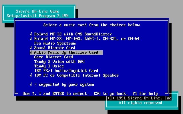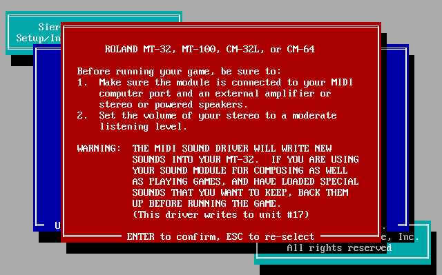 Fortunately, a solution exists! Michael C. Maggio wrote a General MIDI driver for Sierra SCI1 games that combines both music and digital audio (sound effects) into the same General MIDI driver. This replaces the General MIDI setup option to use his new files. To install: