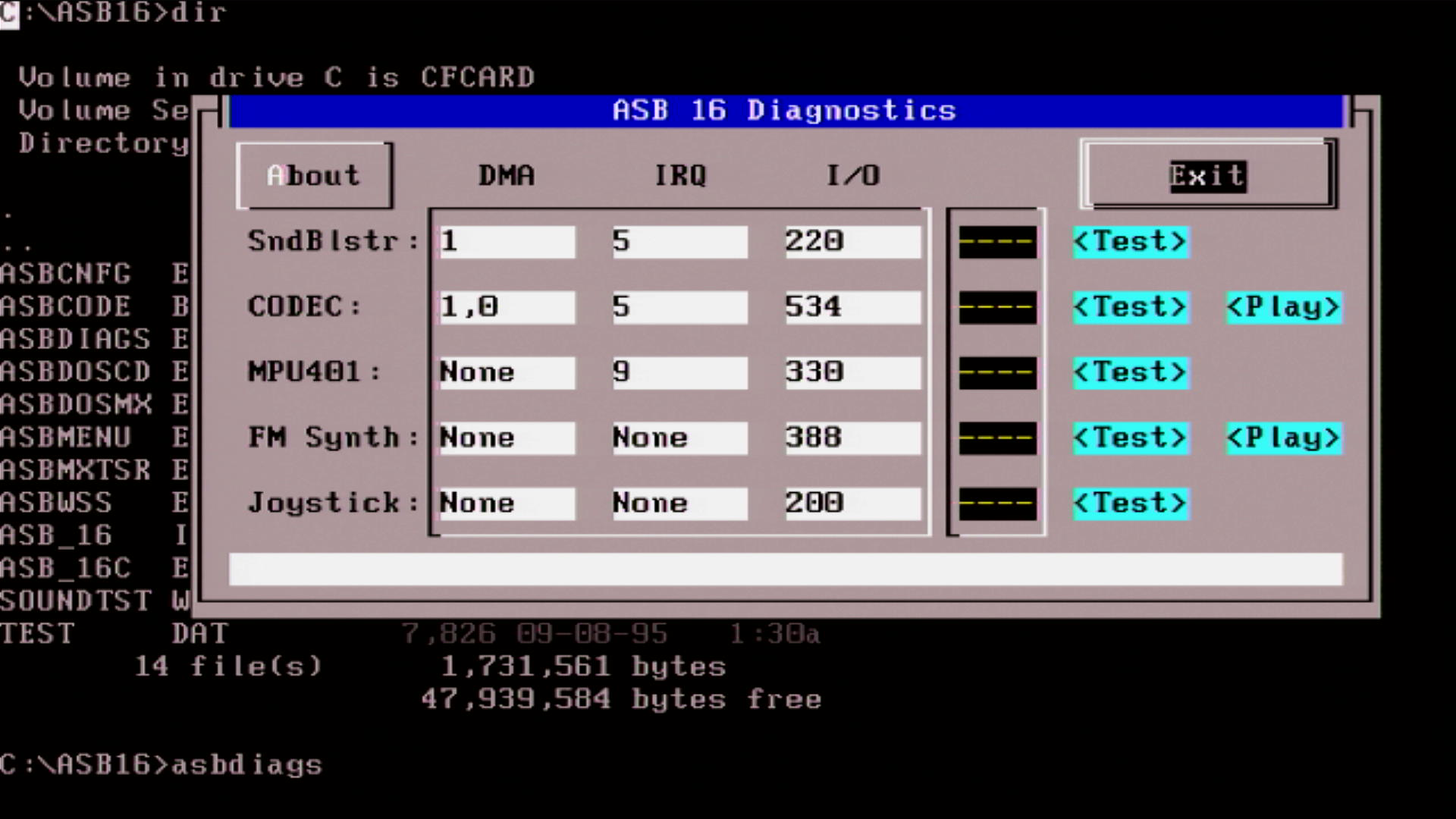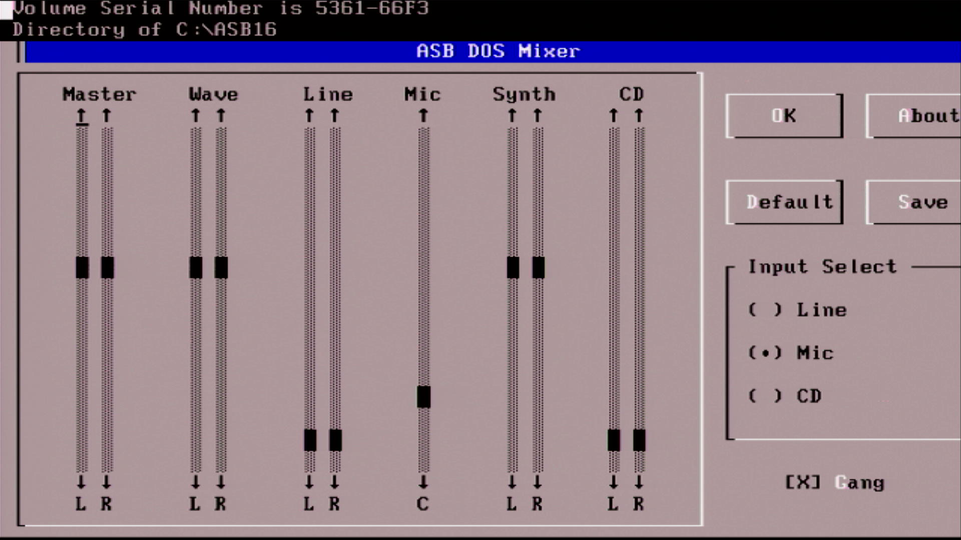 The MSC 16 and MSC 32 cards use the same driver software as the ASB 32/64. In DOS, this gives you three tools - a diagnostic utility, a mixer and a cd player.