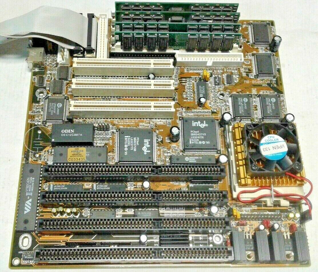 CPU support: Intel Pentium P54C/T and P55C/T, AMD K5, and Cyrix M1, MII.