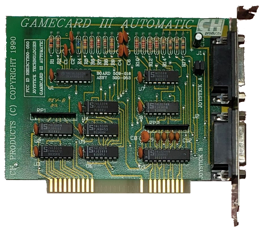 The Game Card III provided your PC with dual game ports, but this wasn't just an interface card. It also provided programmability into the mix, with axis sensitivity adjustments via software.