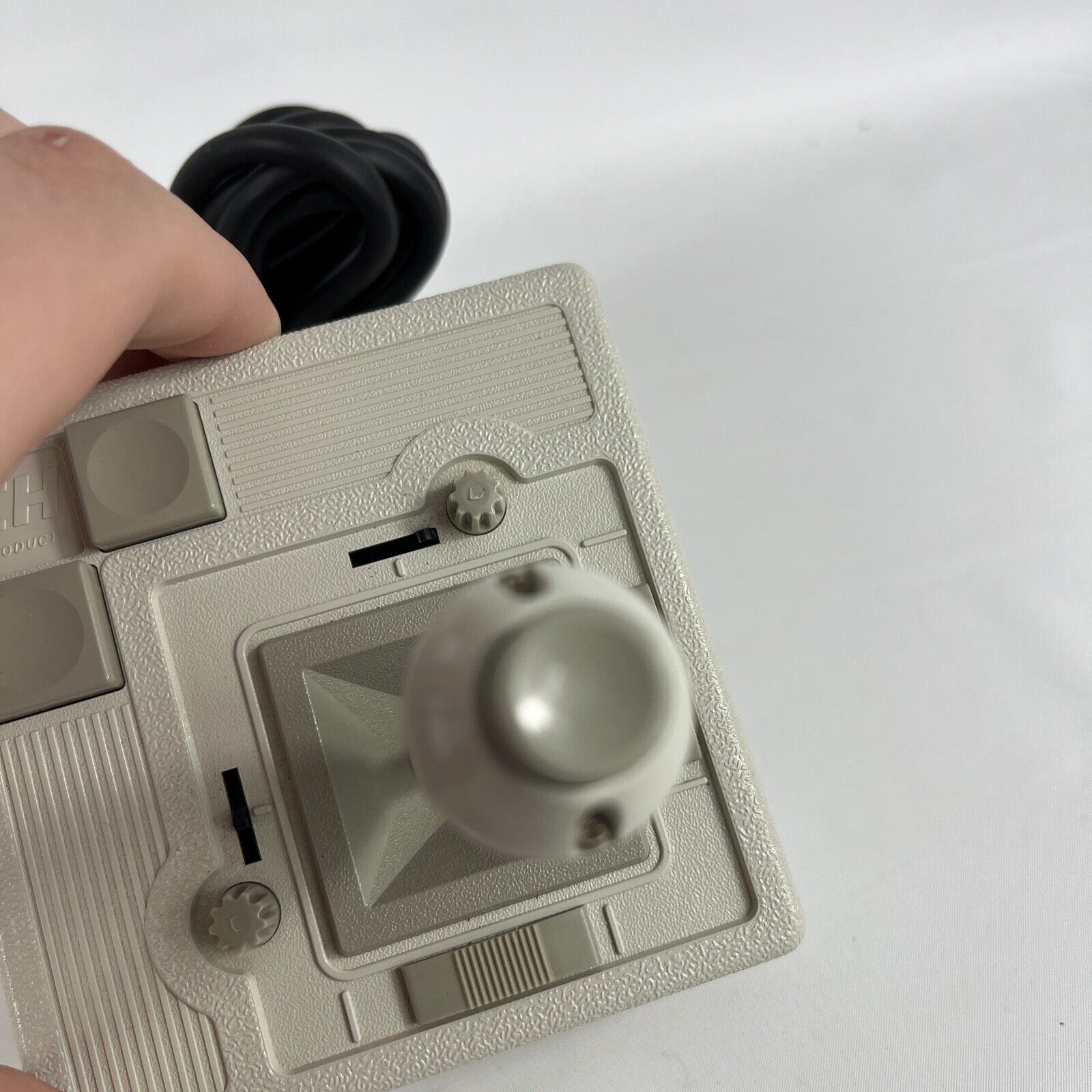 The Mach II was essentially a Mach I but added rotary trim knobs for the X- and Y-axis that would allow you to mechanically calibrate the joystick. It also sported a thinner control stick more akin to the Mach I.