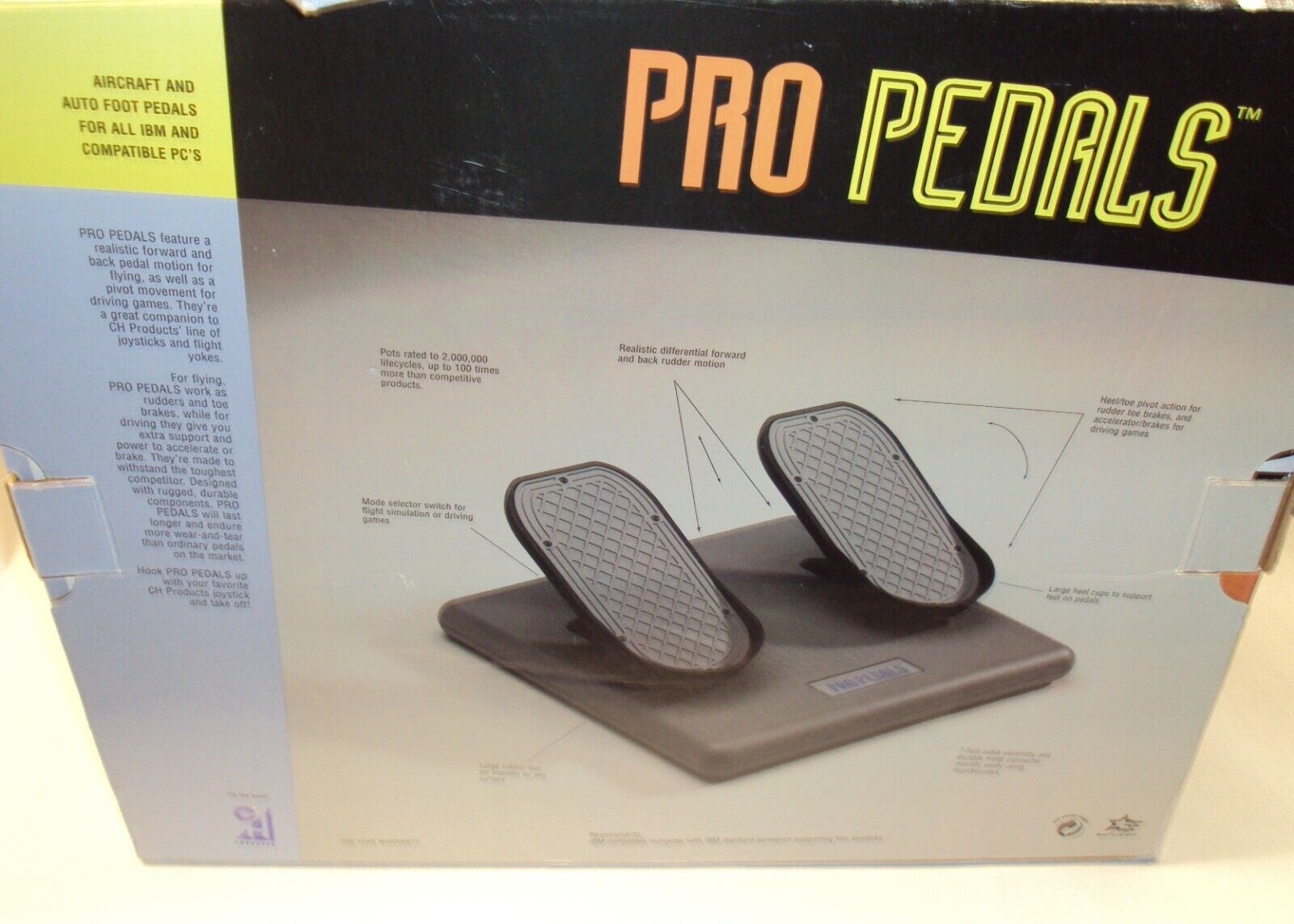The CH Pro Pedals offer realistic rudder control for both flight simulators and driving games. The Pro Pedals include differential toe brakes for flight sims, and pedal chocks for driving games.