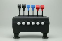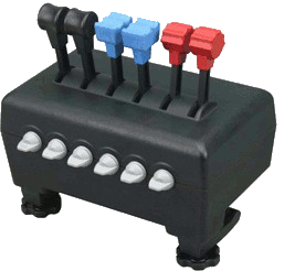 The CH Throttle Quadrant offers 6 axis and 12 buttons of configurable features for both multi-engine and twin-engine aircrafts. Unit includes removable knobs for customs configuration (2 blue, 2 red, and 4 black knobs included) and 6 physical detents.