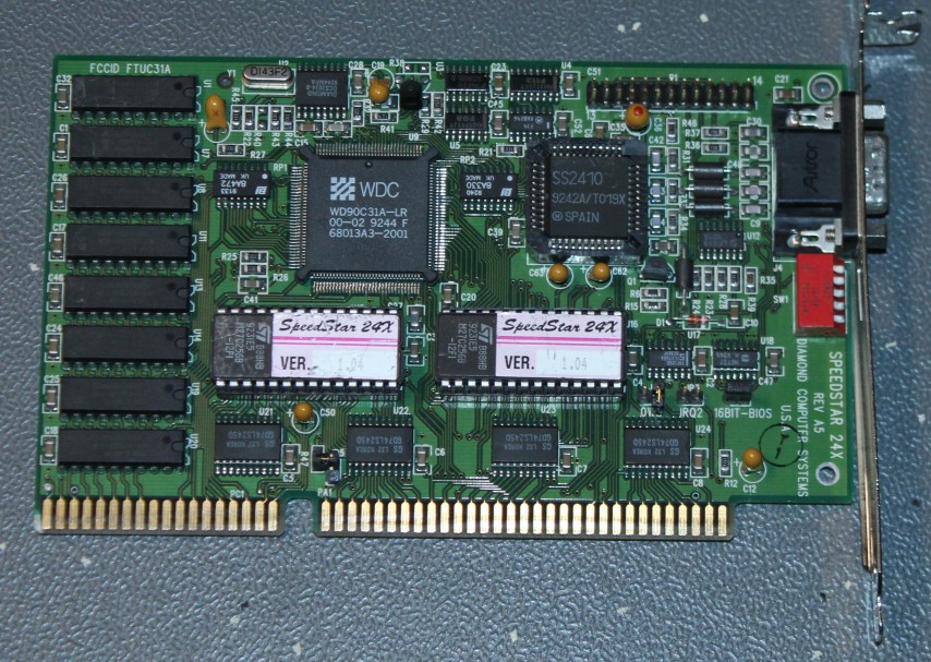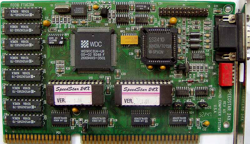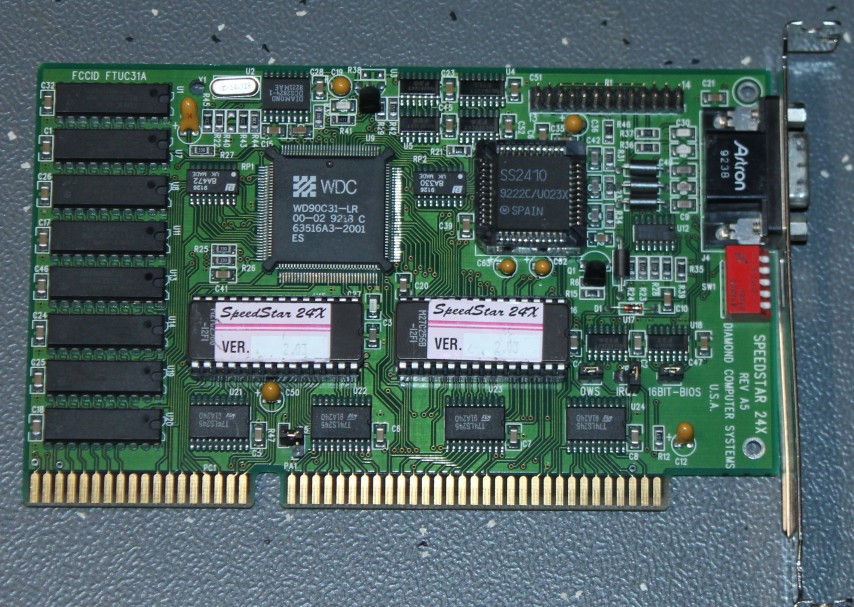 Diamond launched the SpeedStar 24X in July 1992. It kept the cost down by using DRAM instead of VRAM which is faster but more expensive. Despite this, Diamond claimed the 24X was still competitive with many VRAM-based cards.