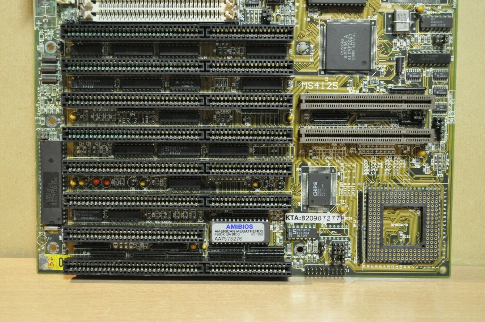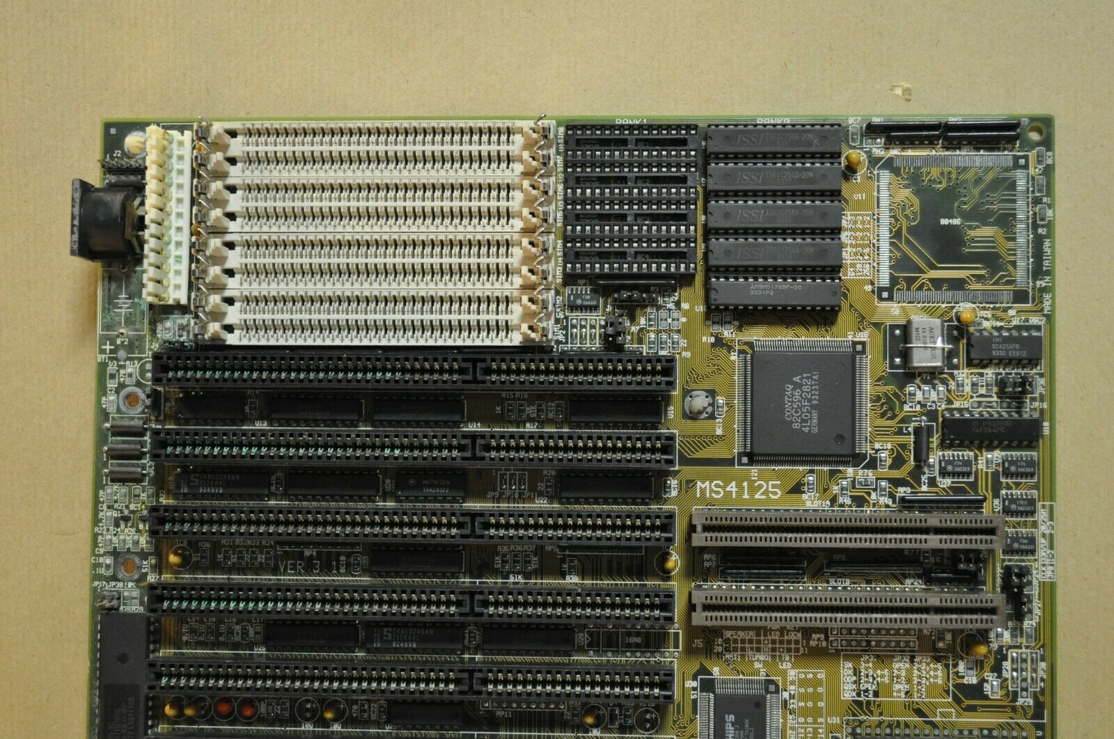 The MS-4134 motherboard supports Intel 80486 SX, DX and DX2 CPUs as well as their AMD counterparts, ranging from 25 MHz up to 66 MHz. It also identifies whether you have installed an S-series CPU, which provide SMM mode - these CPUs can be identified physically with the code "SA5V1X" stamped on them. It also supports the Cyrix M7.