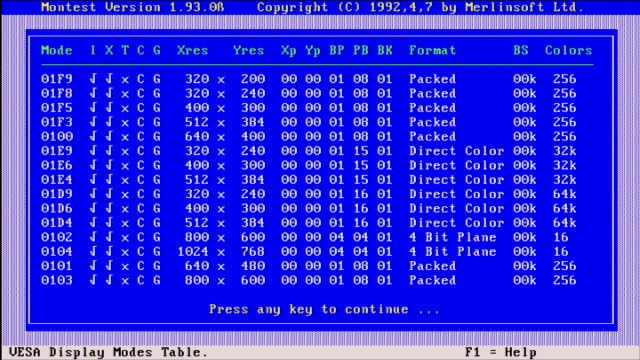 - Backward compatibility with MDA, CGA, EGA, Hercules and AT&T 6300