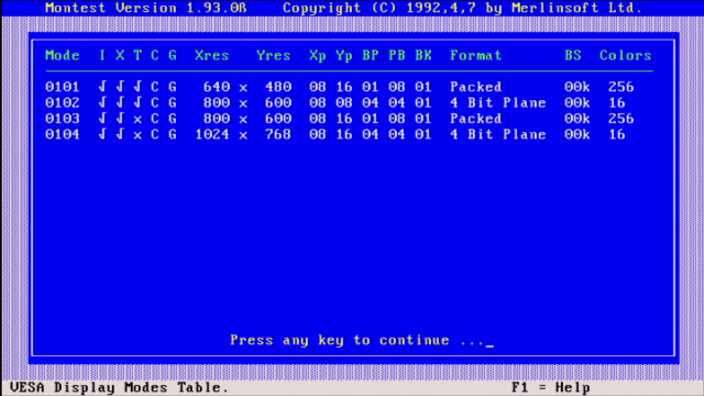 | Sixteen 64Kx4 DRAMs | 512 KB | 1024 x 768 in 16 colours, or 640 x 480 in 256 colours |