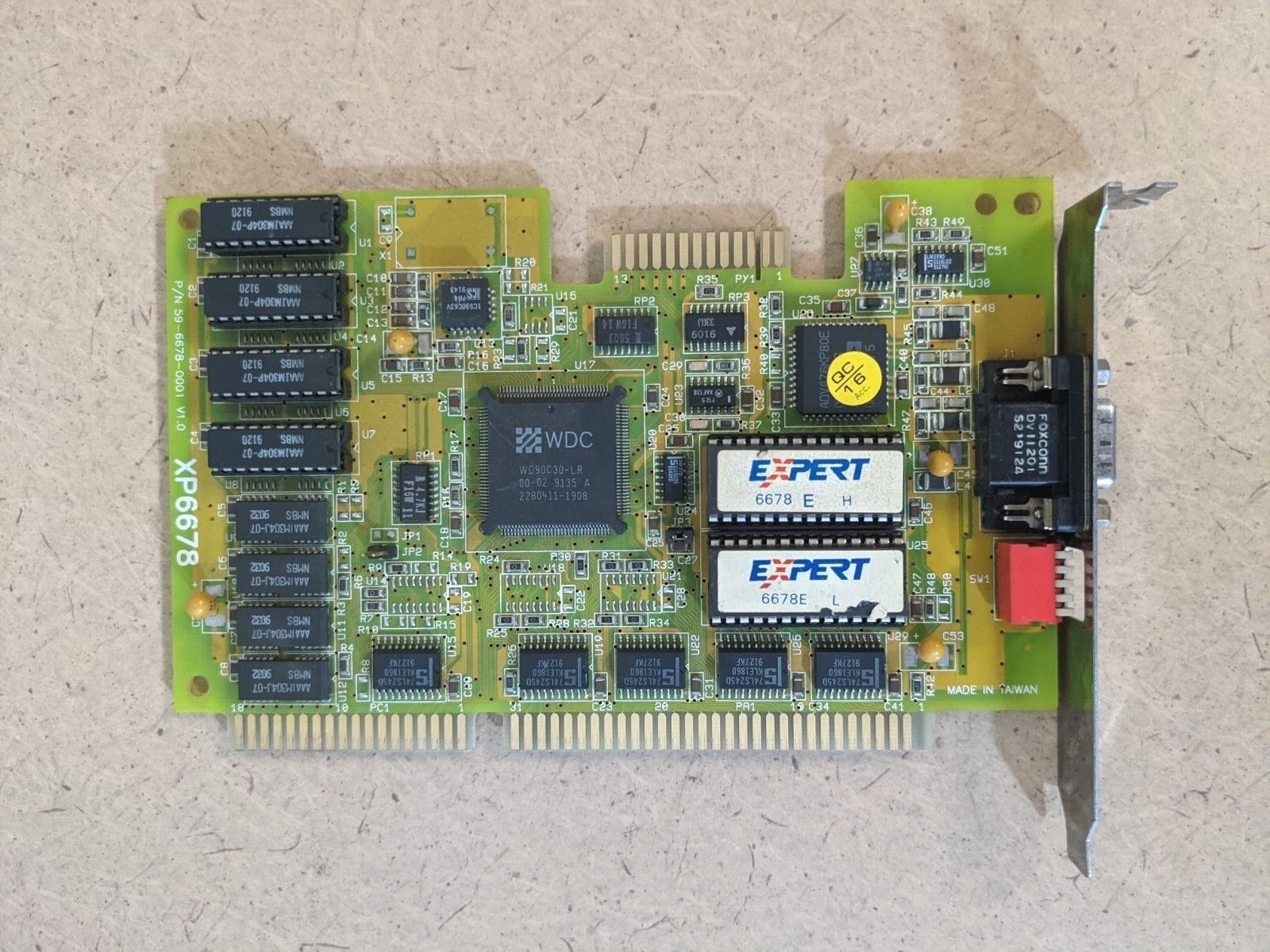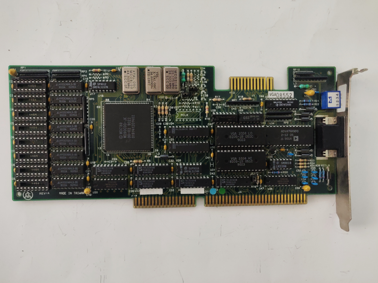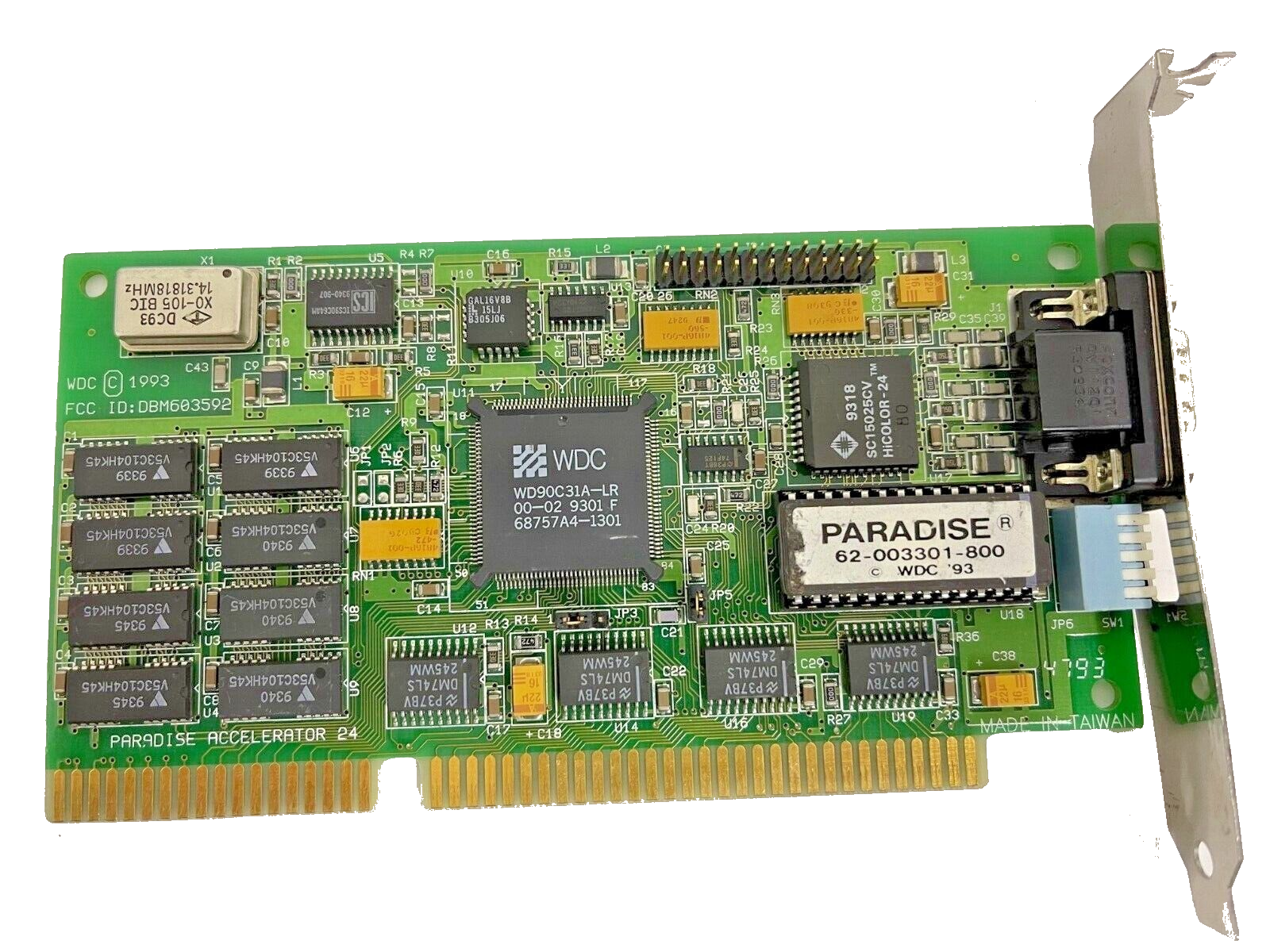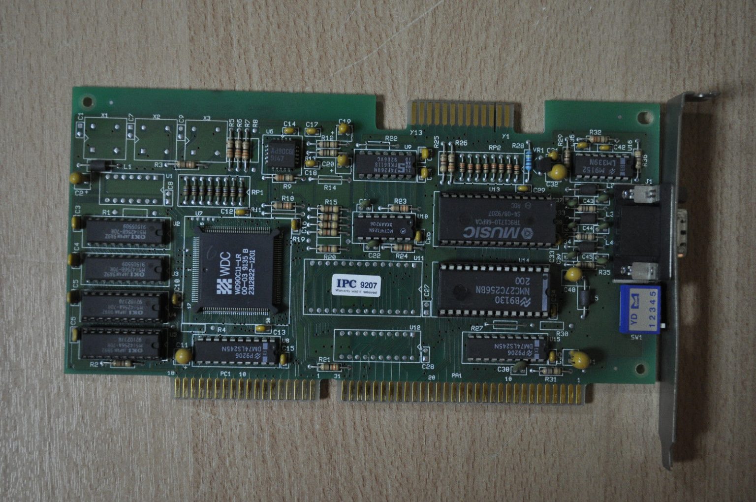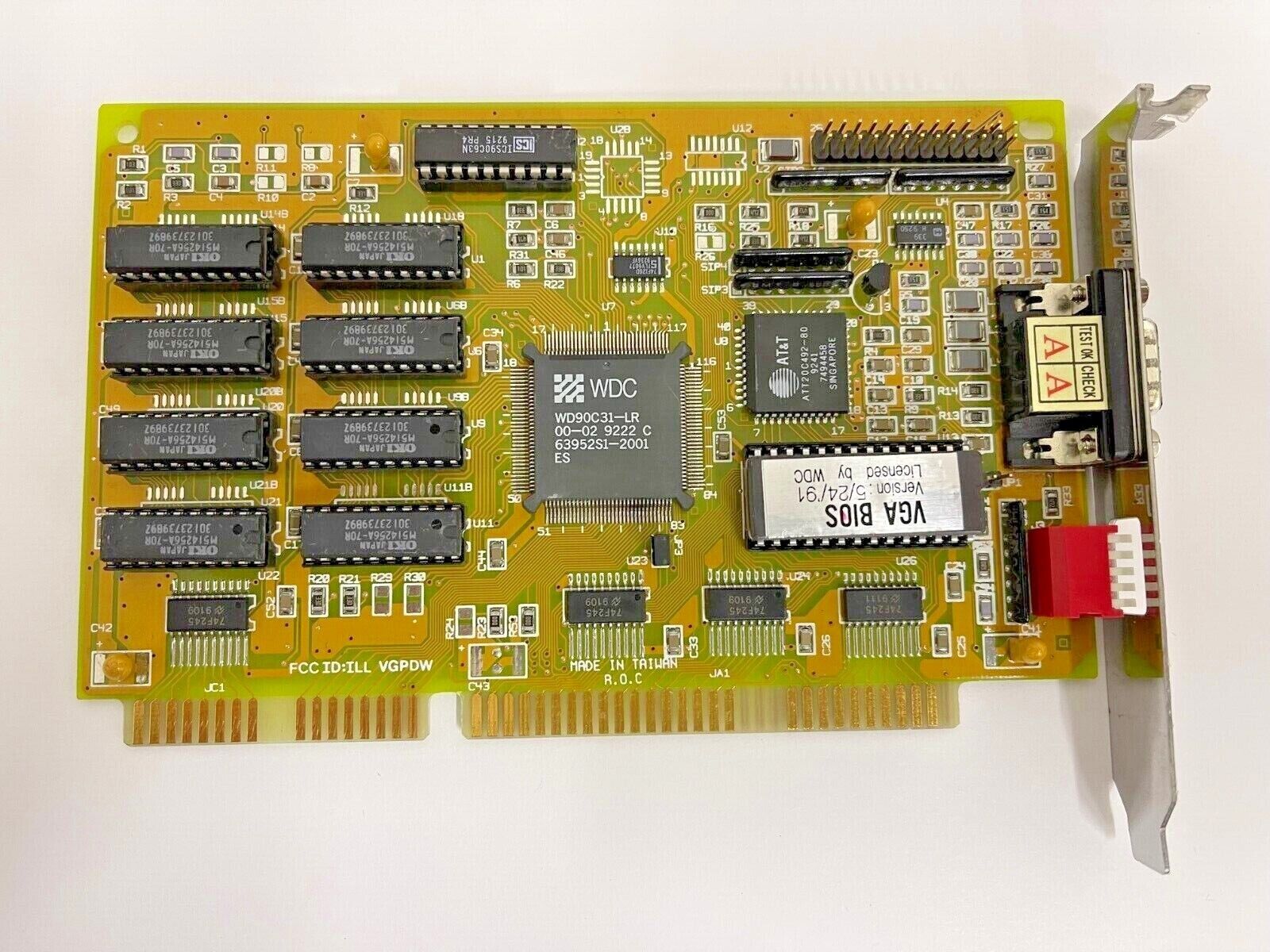 An "Enhanced VGA controller" from Western Digital - the WD90C11-LR chipset. The WD90C11 used a 1.25 micron process, and WD90C11A used the later 0.9 micron process for manufacture. Highlights of the chipset include: