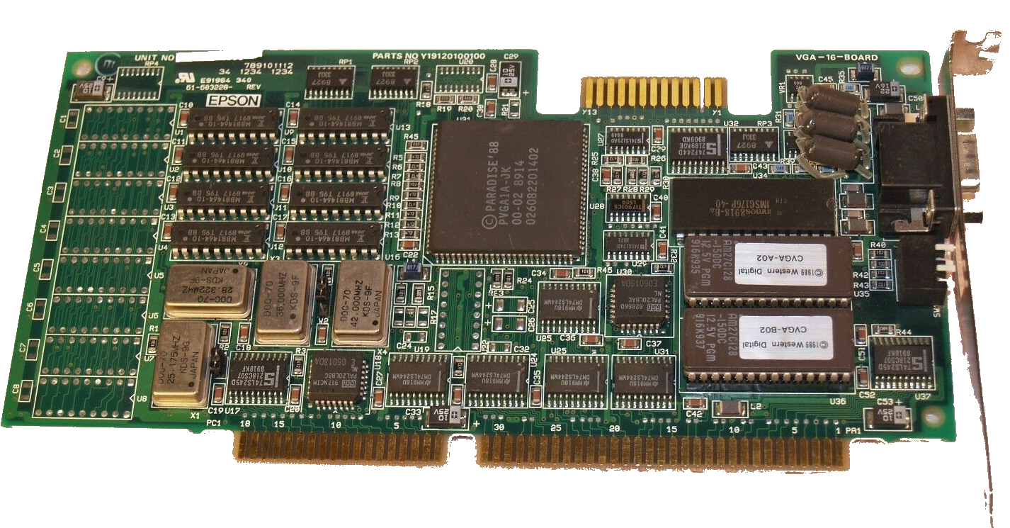 - Philips VGA 16 (FCC ID: DBM5UEVGAPROF) - these cards can also be found with pin-compatible PVGA1A or WD90C90 instead.