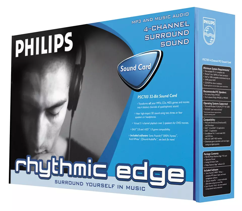The middle-of-the-pack of the three PCI sound cards Philips launched in 2002, alongside the Rhythmic Edge (cheapest) and Acoustic Edge (top-end). All of these were PC sound cards that supported both FM synthesis and wavetable audio.