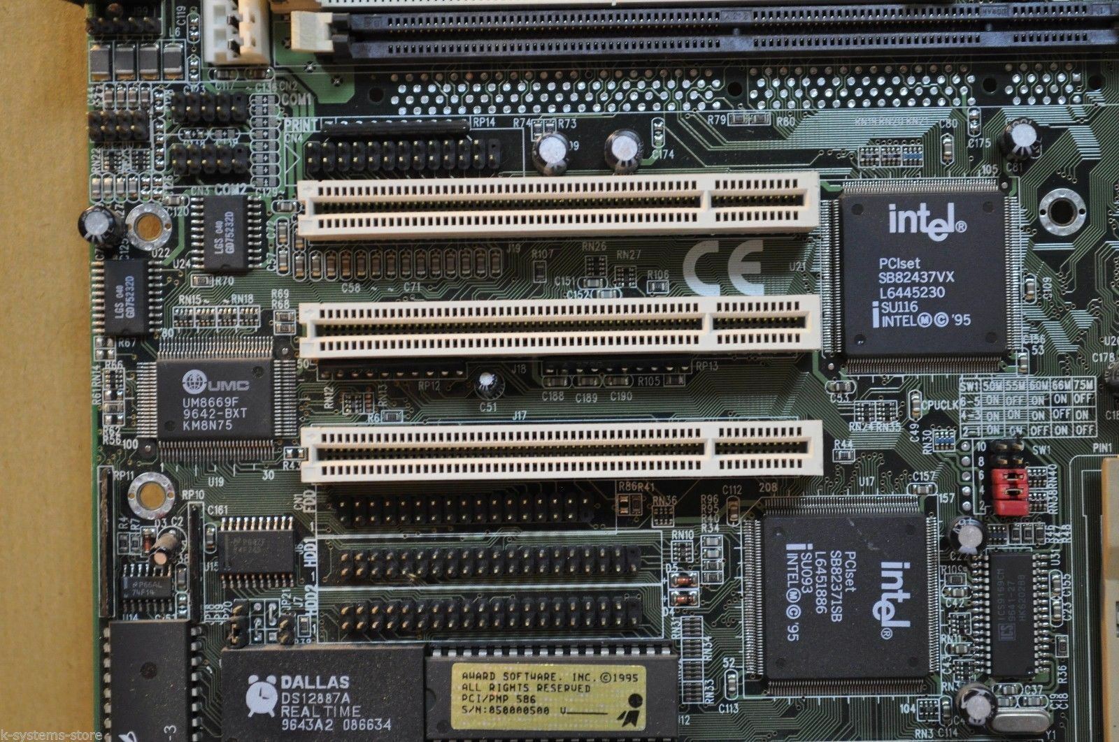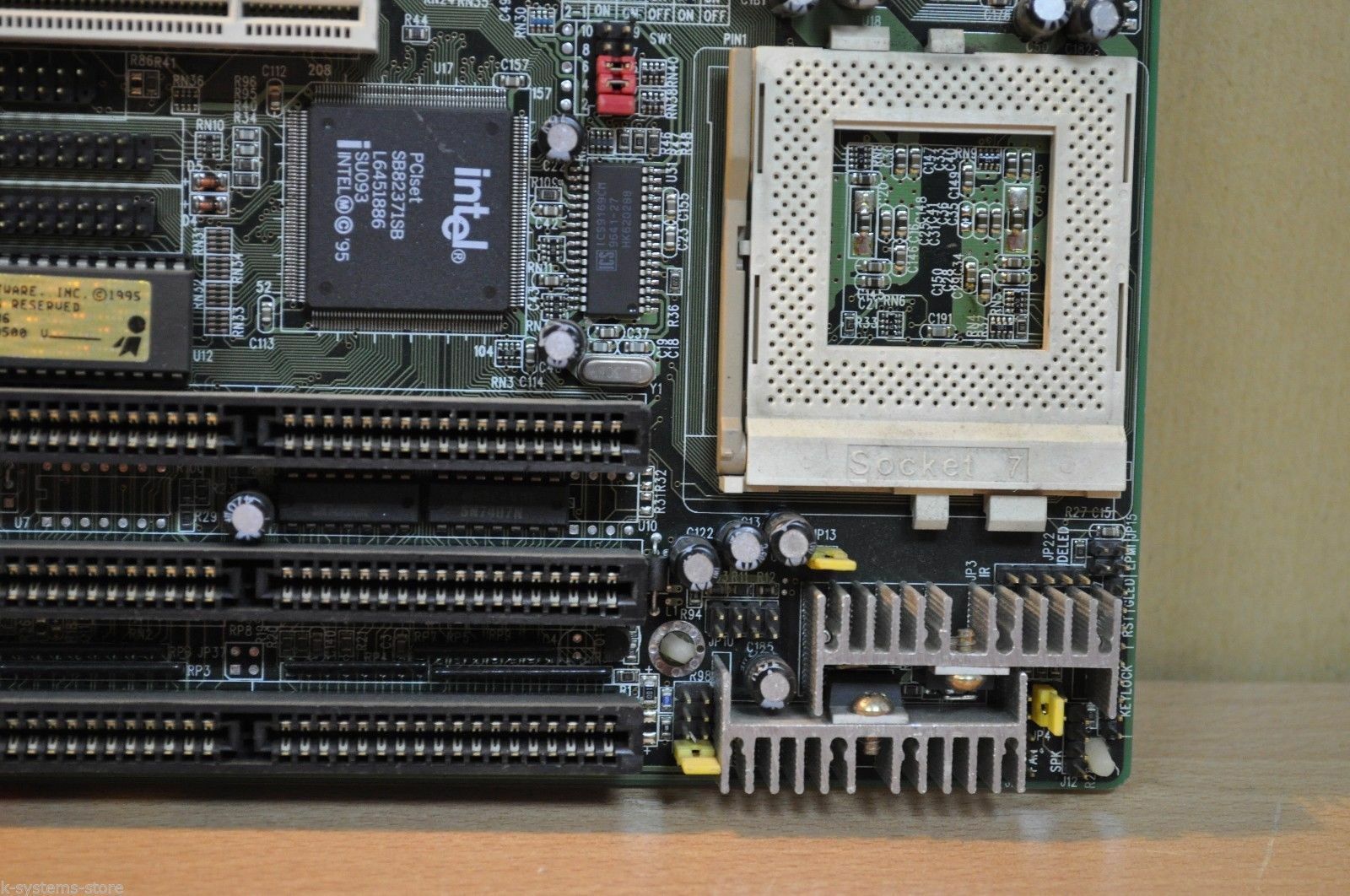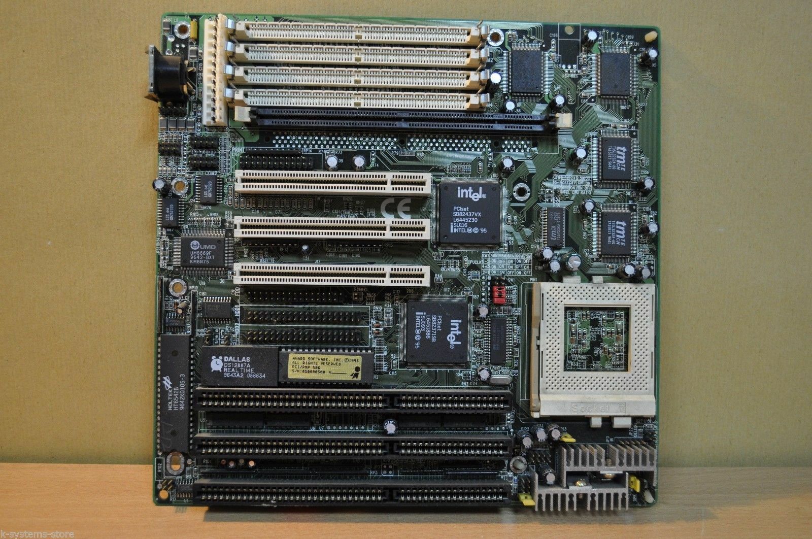 The motherboard supports Pentium, K5, 5k86 and 6x86 CPUs up to 200MHz single-plane (single-voltage) but has the VRM slot for dual-plane (dual-voltage) CPUs like the Pentium MMX.