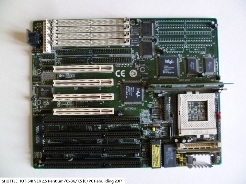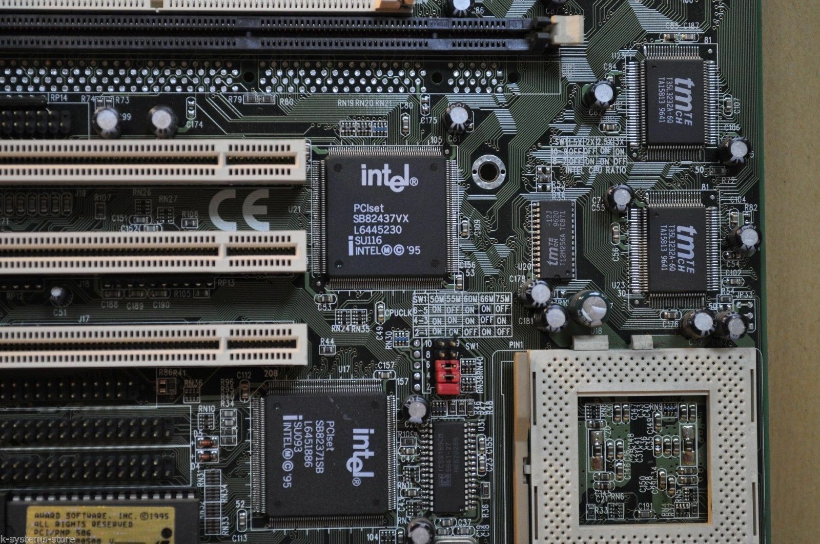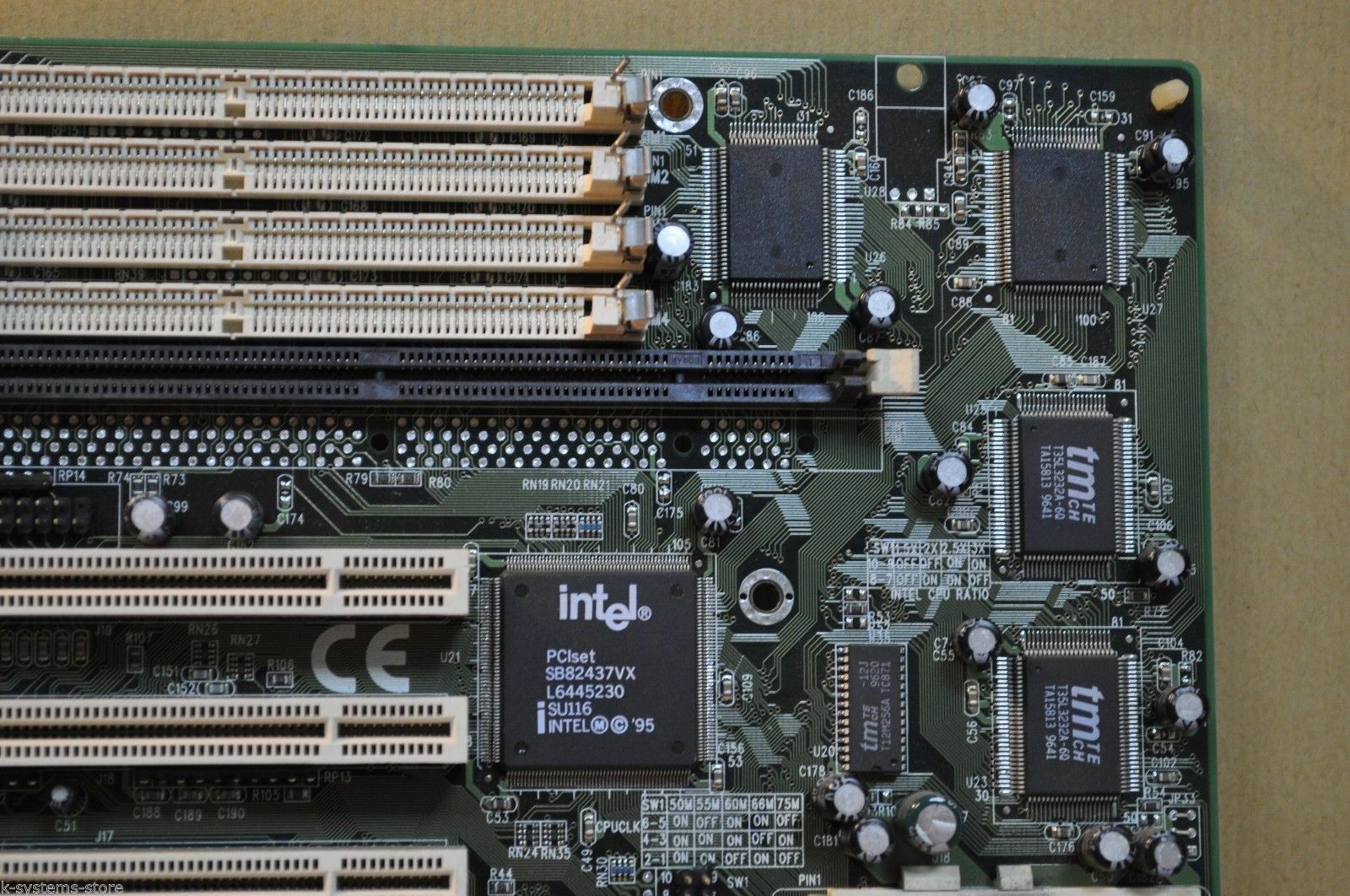 The motherboard supports Pentium, K5, 5k86 and 6x86 CPUs up to 200MHz single-plane (single-voltage) but has the VRM slot for dual-plane (dual-voltage) CPUs like the Pentium MMX.