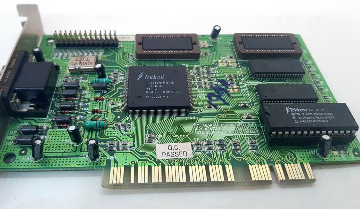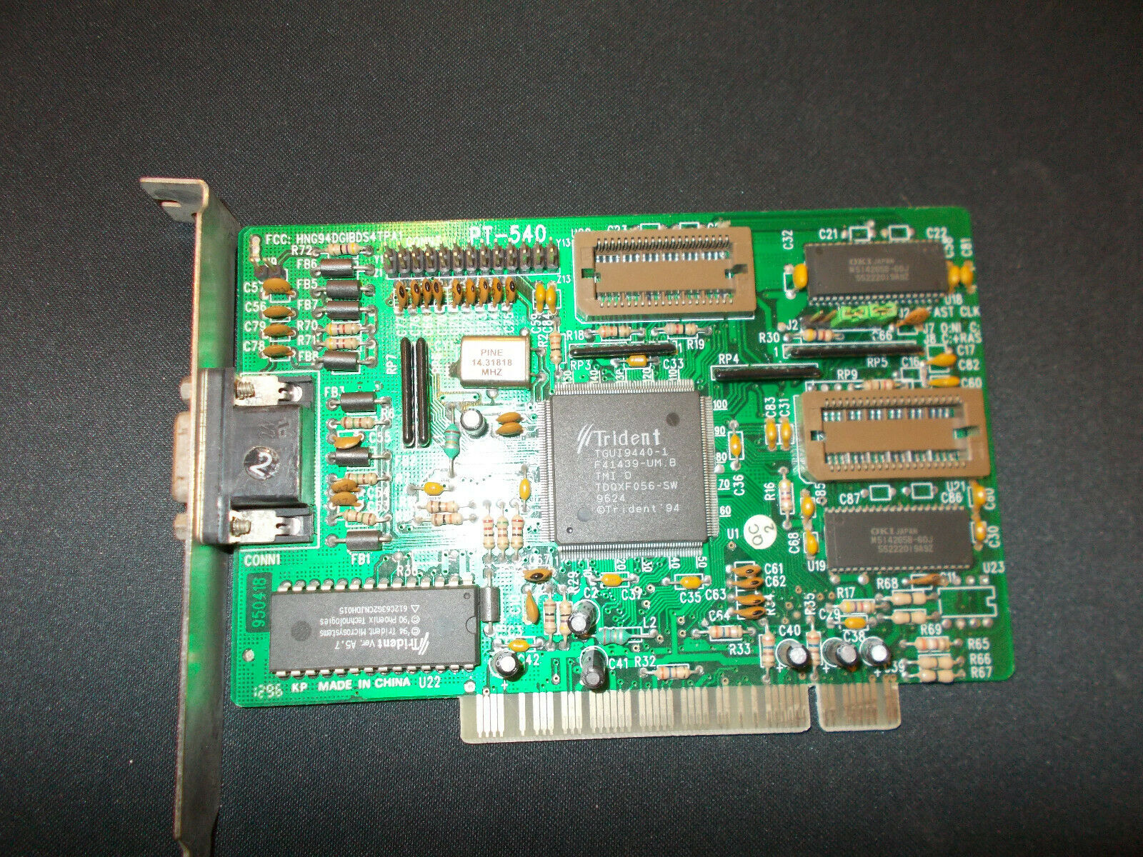 The TGUI9440 is a "GUI Accelerator", supporting FPM or EDO DRAM memory from as fast as 45ns down to 80ns on a 64-bit bus. The chip itself has an integrated 24-bit TrueColor DAC.