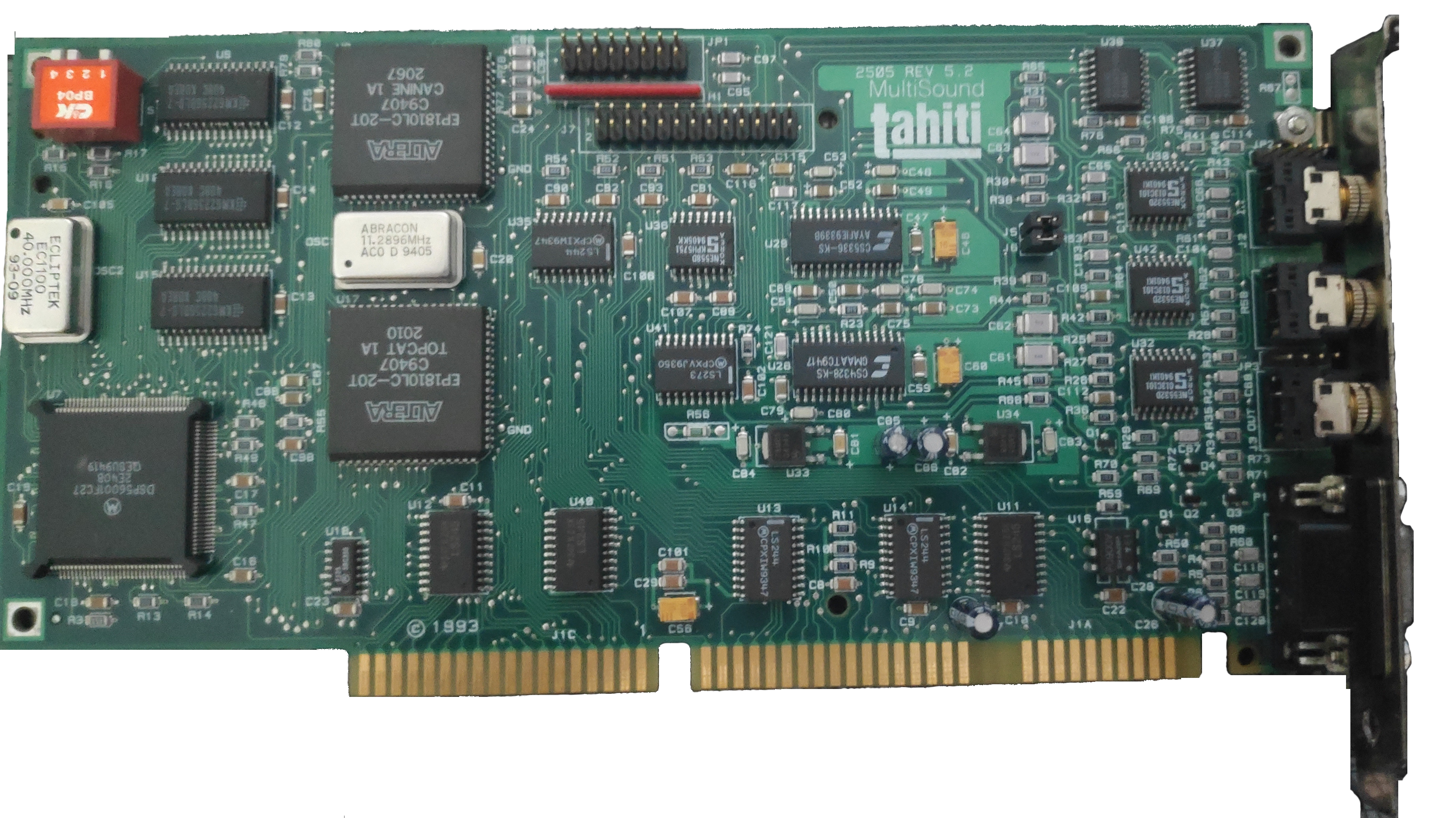 The Tahiti is part of the second generation of MultiSound sound cards from Turtle Beach. It uses a Motorola 56001 DSP chip like MultiSound does, but unlike some other MultiSounds, Tahiti does not come with an onboard wavetable, instead simply providing a header for connection to a General MIDI (GM) wavetable daughterboard.