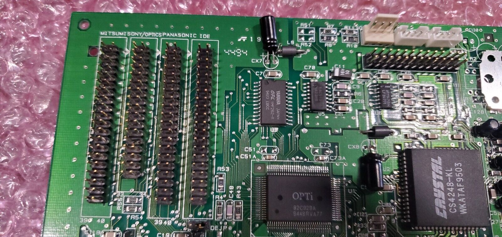 The card features an MPU-401-compatible MIDI port (UART only), stereo line-in, stereo line-out, mono mic-in and an amplified speaker-out. It was also pretty unique in providing a header for almost every CD-ROM interface - Sony, Mitsumi, Panasonic and IDE.