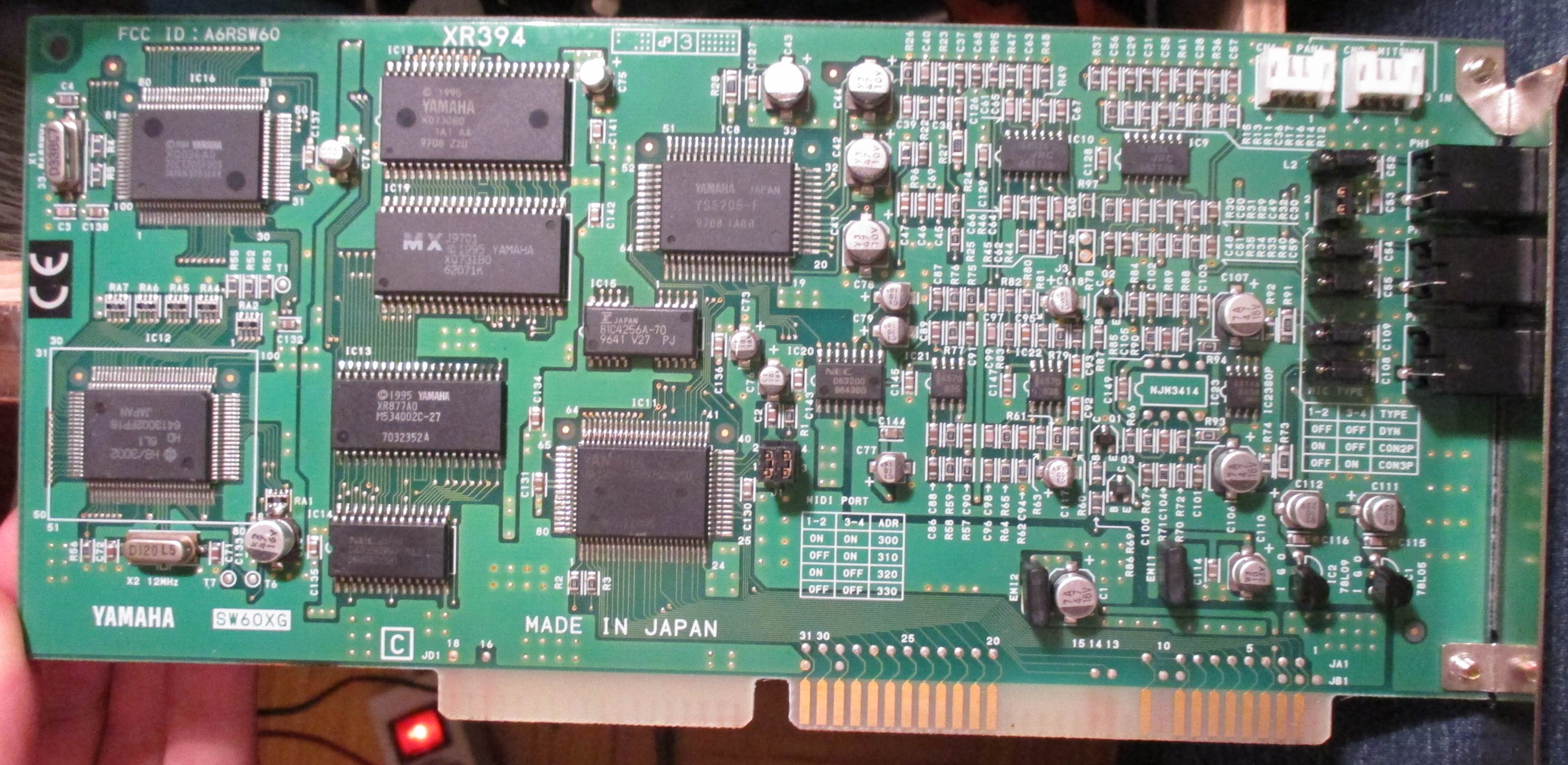 The SW60XG was Yamaha's equivalent of the Roland SCC-1 - they took their DB50XG wavetable daughterboard and put it onto a 16-bit ISA card. It was fully General MIDI-compatible as well as supporting Yamaha's own XG extension to it, and it supported up to 32 voices, and came with a 4 MB sample ROM.