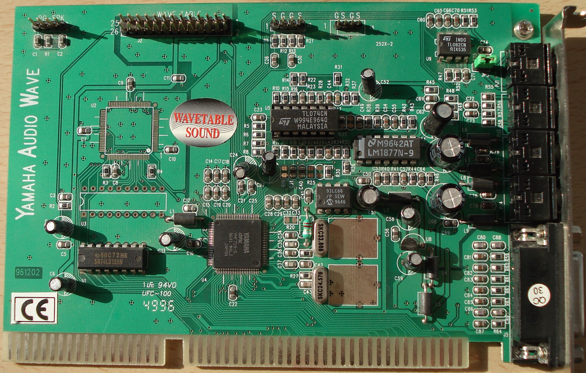Interestingly though, the card has solder pads for an OPL4 chip, Yamaha YMF-704-S. This is a full wavetable and 1 MB ROM sample set in a single chip.