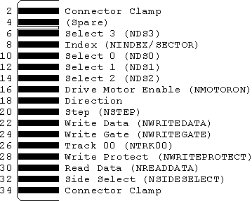Standard 5.25" floppy edge connector pinouts: