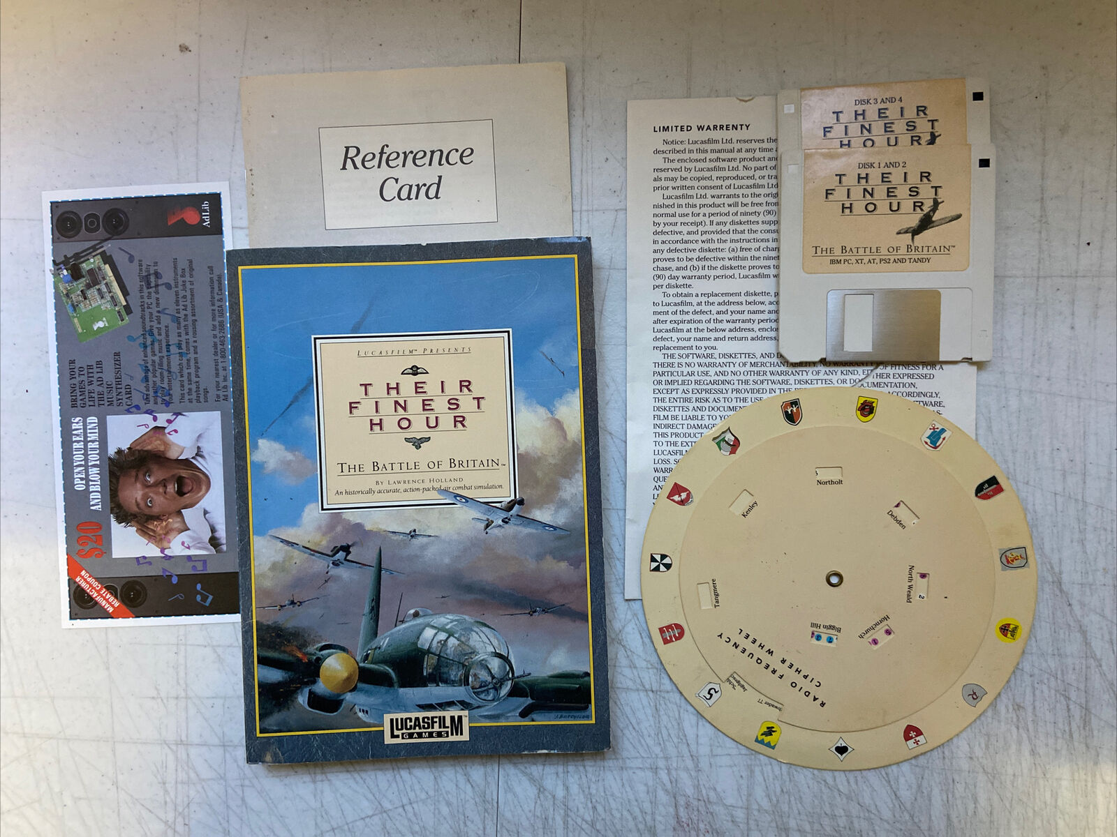 Their Finest Hour by Lucasfilm Games, with the all-important codewheel