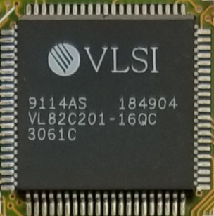Older than the SCAMP chipset, the '201 is actually considered one of the fastest 286 chipsets you can get - faster than its successor, the '311! Some have managed to get up to 27.5 MHz stable using the VL82C201-16Q variant chipset, and a little less stable at a whopping 30 MHz! VLSI also produced a faster VL82C201-20Q variant of this, which by default is rated for up to 20 MHz instead of 16 MHz - these seem to be incredibly rare.
