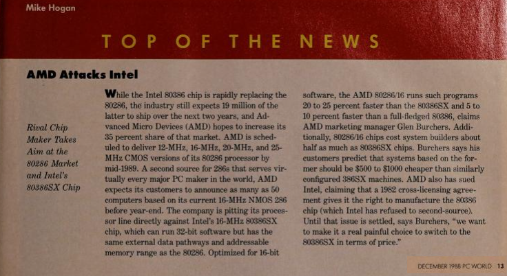 Harris Semiconductor, along with AMD, Fujitsu, Siemens and several other companies with chip fabrication facilities in the U.S. had a longstanding contract with Intel to manufacture Intel's microprocessors. When Intel shifted their focus to their new 80386, they deliberately cut ties with their second source partners, which meant only Intel-branded (and Intel-fabricated) 386 chips would be available to the PC market.