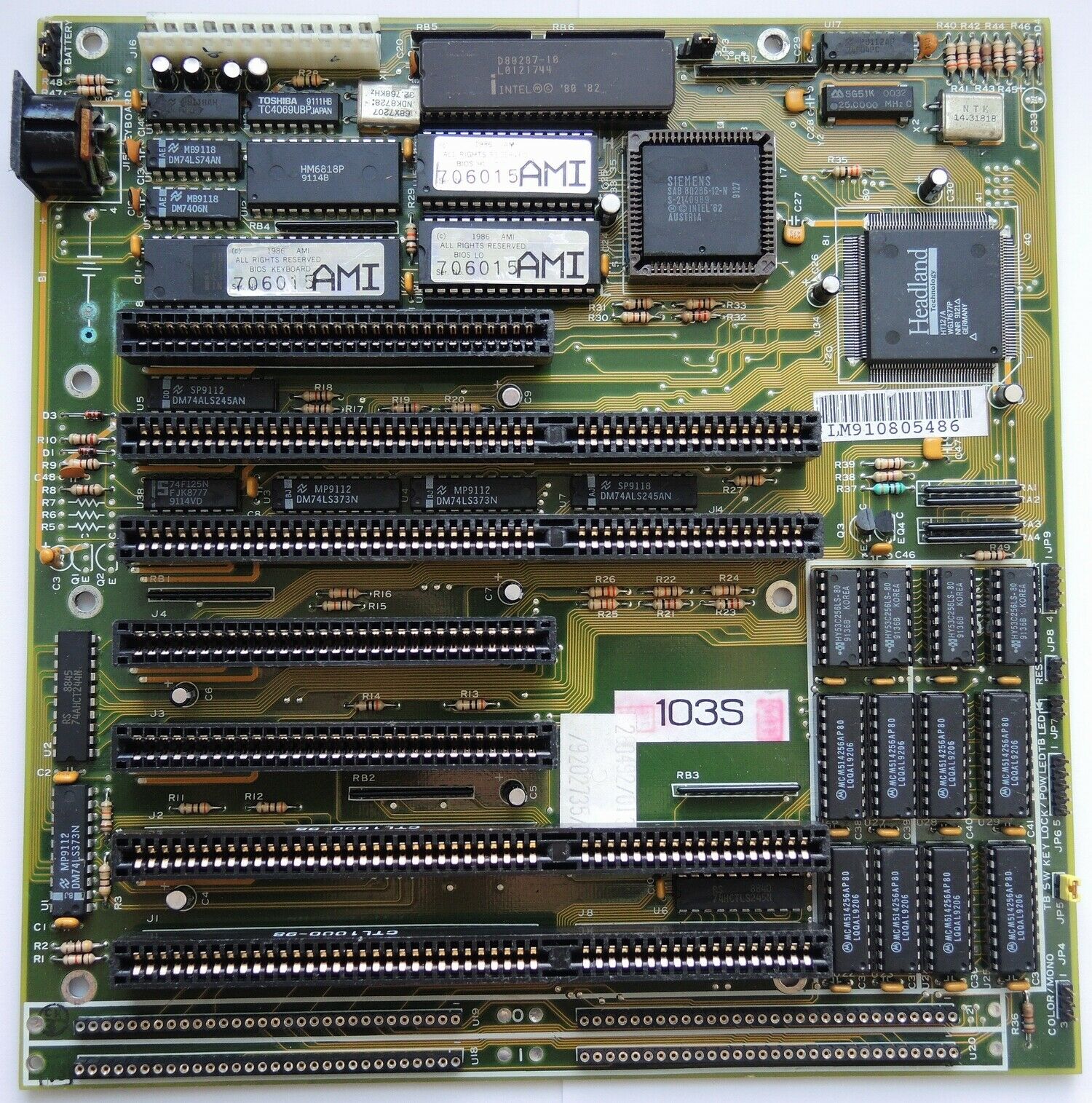 From factory this board came with a 16 MHZ 80286, and associated 32 MHz crystal. In order to run at 0 wait states, 70ns SIMMs were insufficient. The tester had to locate 60ns 1 MB Siemens-branded ones which then worked with the mainboard set to 0 WS.