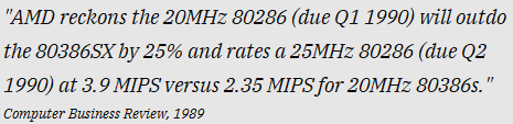 Later on, AMD and Cyrix legally reverse-engineered the Intel 80386 to create their own close replicas that did not rely on getting Intel's permission, but I digress... back to the 286: