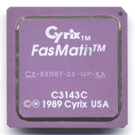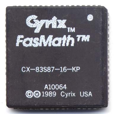 The CX-83S87 was designed to complement 386SX-based systems and was available in 16, 20, 25, and 33 MHz variants. Like its big brother, CX-83D87, these were the fastest co-processors you could buy for 386 systems. Any CX-83S87s manufactured after 1991 got the 387+ internals.