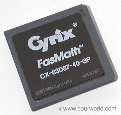 Because the Cyrix Cx486SLC/DLC CPUs didn't come with an internal FPU (floating-point unit), motherboards that supported these Cyrix CPUs sometimes also provided a Cyrix math coprocessor socket. These were designed to accommodate the 487DLC coprocessor. These came in 33 and 40 MHz variants.