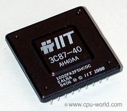 The 3C87 math coprocessor from IIT was designed to sit alongside a 386DX CPU, and came in 20, 25, 33 and 40 MHz versions. Performance-wise, the 3C87 is faster than the Intel 80387DX coprocessor.
