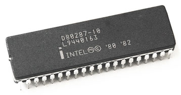 The original Intel 8087 was the only coprocessor available for 8088- and 8086-based PCs. In fact it arrived 2 years before the IBM 5150 even went on the market, but up to that time, initial take-up of the chip had been very low. It came in three versions: 8087-5 (5 MHz), 8087-2 (8 MHz) and 8087-1 (10 MHz).