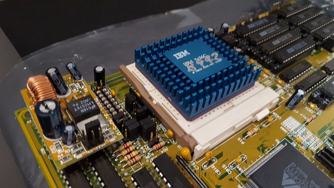 I then tried my blue heatsinked IBM 5x86. Jumpers JC1 and JC2 make no distinction between Intel, AMD or Cyrix chips - the only time you need to change these is if you switch from an 'SX' chip to a 'DX' chip. The resister packs RN11 - RN13 and RN40 are identical for Intel 80486DX4 and AMD Am486DX4 and Cyrix 5x86 chips are not specified, so I kept it set to those initially. The critical jumper to change for Cyrix processors is J37 which needs to be jumpered 2-3.