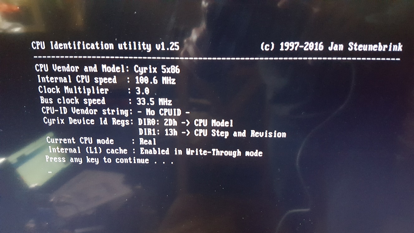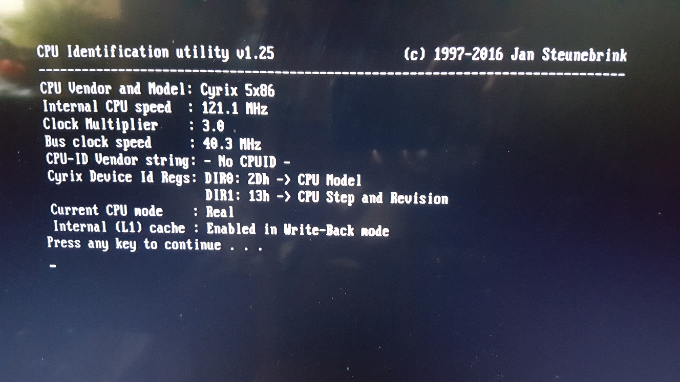 My IBM chip here is a Stepping 1, Revision 3 CPU. Why does that matter? Well, apparently this stepping does not support BWRT (burst write-back cycles), which the Stepping 0, Revision 5 CPU does. There are no other CPU variants than these two. I also found that Cyrix flags LOOP_EN and RSTK_EN should also be off for better stability.