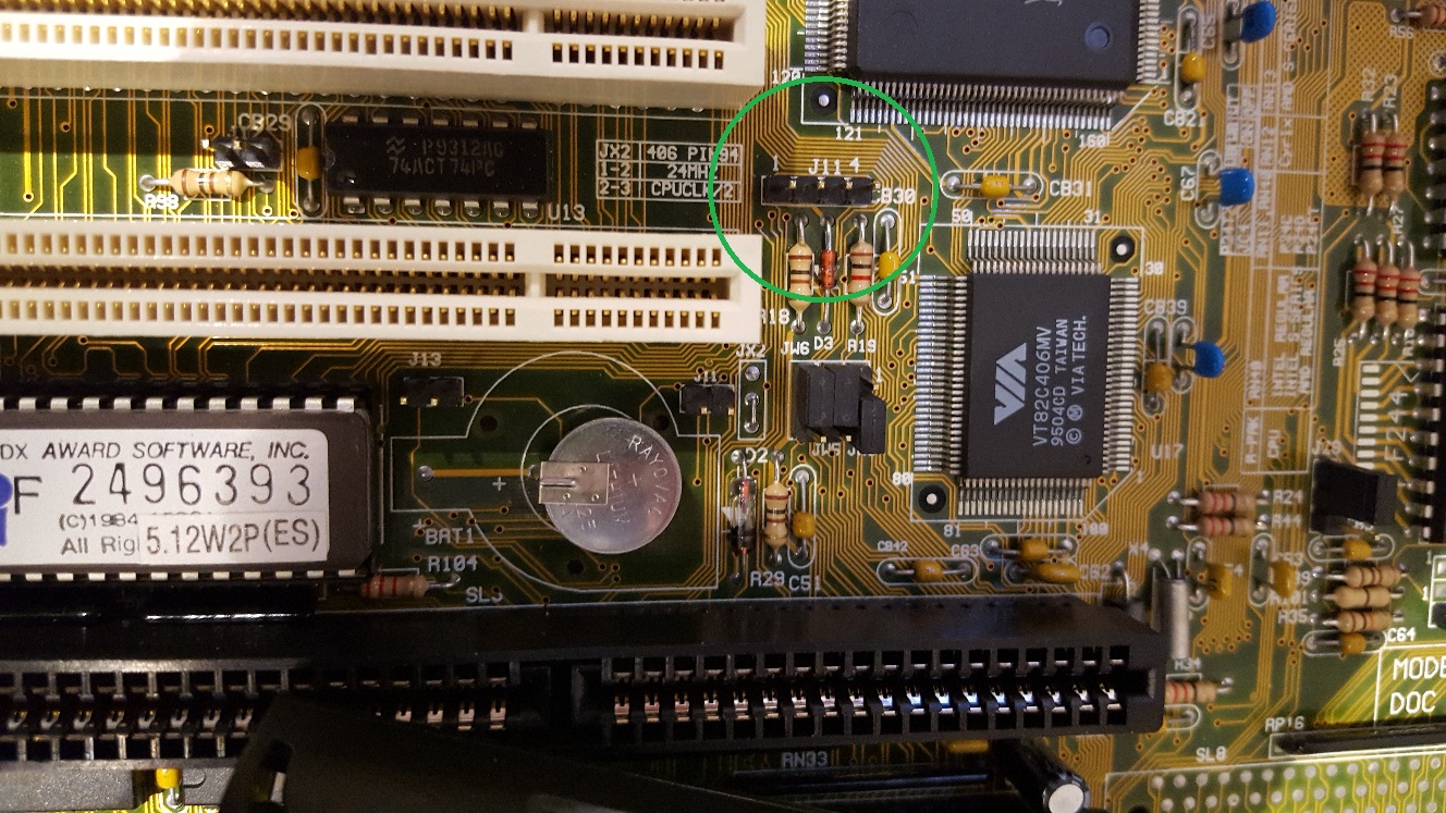 As you can see in the picture above, I already tested up to a 486DX2-66, and this runs well. The motherboard has a lot of jumpers to change when you are performing a CPU swap, but utlimately they are grouped as follows: