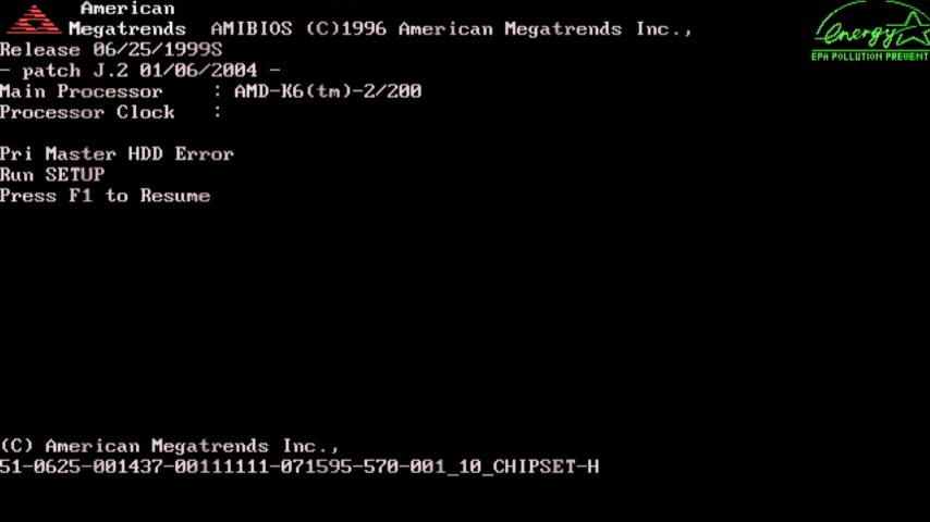 It has been upgraded with an unofficial patch from Jens Steuenbrink which is "06/25/1999S" with his patch called "J.2 01/06/2004". This adds support for the AMD K6-2+ and K6-III+ CPUs by fooling the chipset into thinking there's a K6-III (non-plus) in there, including the on-die L2 cache and the Write-Allocation and Write-Combining features. The USB support bug that hampered many of the PC Chips BIOS revisions has also been fixed in this patch.