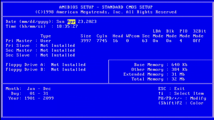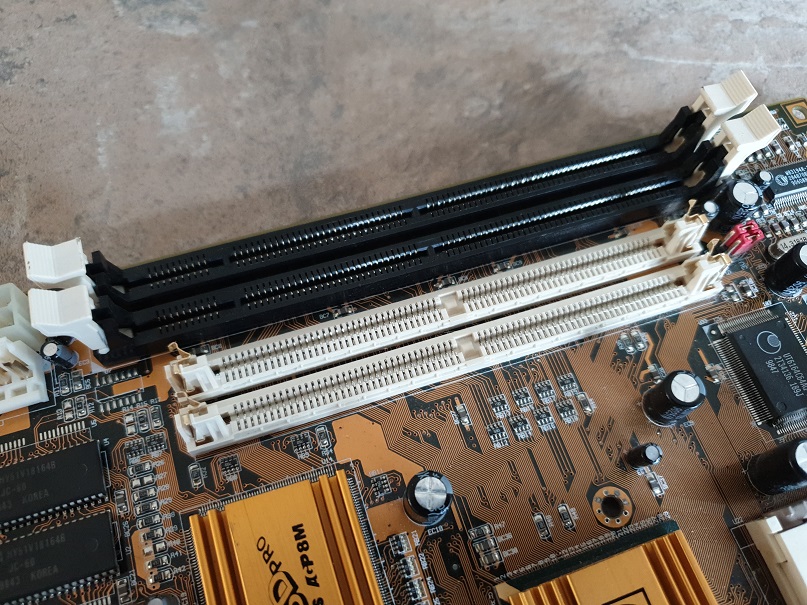 It has been suggested by some that you can only use either the 72-pin SIMM slots or the 168-pin DIMM slots, not both at the same time. That would make sense, given the performance differences between the two technologies, but I will test this out anyway for the record. I imagine the SDRAM DIMMs would be throttled back massively to run at the same speed as the SIMMs.