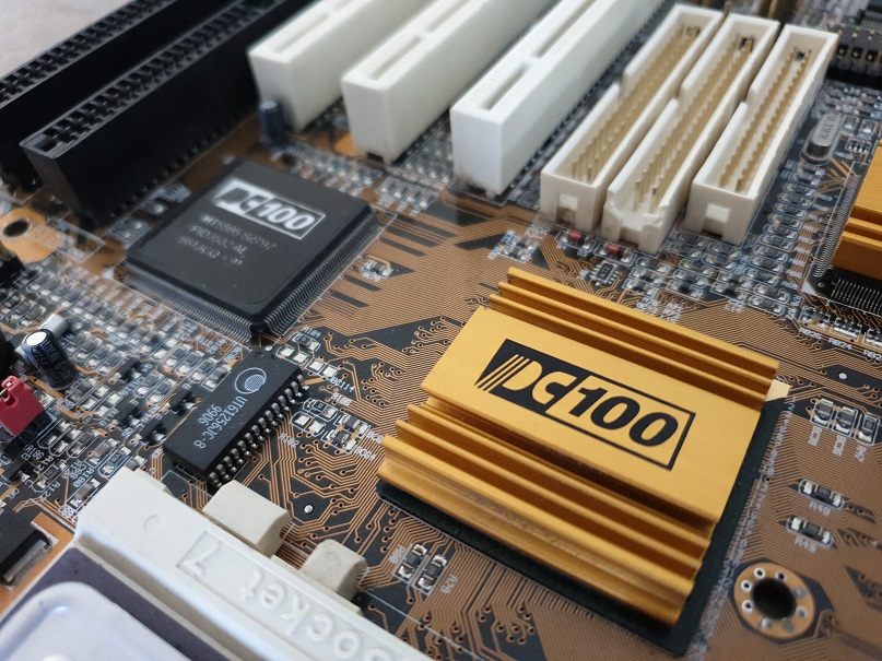 Date-wise, the most recent date stamp on the motherboard's chips is week 7 of 1999, though most of the chips are very late 1998. I won't remove the heatsinks on the chipset chips to check those. This date stamp puts the motherboard's manufacture around late February 1999.